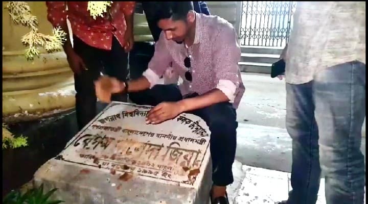সংবাদ বাংলা: বিএনপি চেয়ারপারসন বেগম খালেদা জিয়ার নাম্বলিত জগন্নাথ বিশ্ববিদ্যালয় (জবি) ঘোষণার নামফলক রাতের আঁধারে ভাঙচুর করে উচ্ছেদ করছে বিশ্ববিদ্যালয়ের