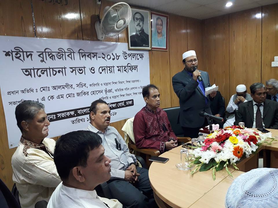 সংবাদ বাংলা: আলোচনা সভা ও দোয়া মাহফিলের মধ্য দিয়ে মাদরাসা শিক্ষা বোর্ডে শহীদ বুদ্ধিজীবী দিবস পালিত হয়েছে। শুক্রবার শিক্ষা মন্ত্রণালয়ের