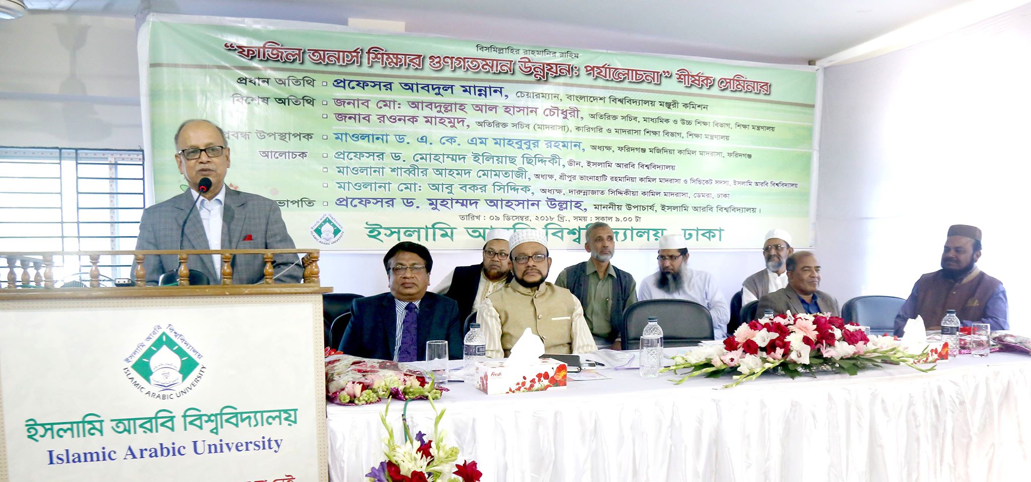 সংবাদ বাংলা: মাদরাসায় জ্ঞানচর্চা বৃদ্ধি ও উচ্চশিক্ষার গুণগতমান উন্নয়নের লক্ষ্যে রোববার ইসলামি আরবি বিশ্ববিদ্যালয়ে সেমিনার অনুষ্ঠিত হয়েছে। বিশ্ববিদ্যালয়ের উপাচার্য প্রফেসর