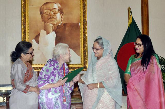 সংবাদ বাংলা: প্রধানমন্ত্রী শেখ হাসিনা নাগরিকত্বের সনদ হস্তান্তর করেন লুসি হেলেনের কাছে। এ সময় বঙ্গবন্ধুর ছোট মেয়ে শেখ রেহানা ও প্রধানমন্ত্রীর মেয়ে সায়মা ওয়াজেদ হোসেন উপস্থিত ছিলেন। এই দেশের জন্য